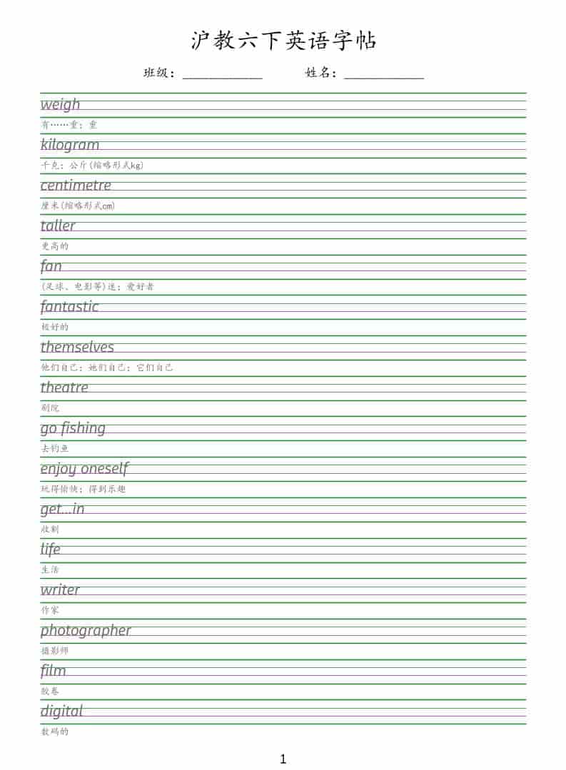 六年级下英语同步字帖《沪教版》