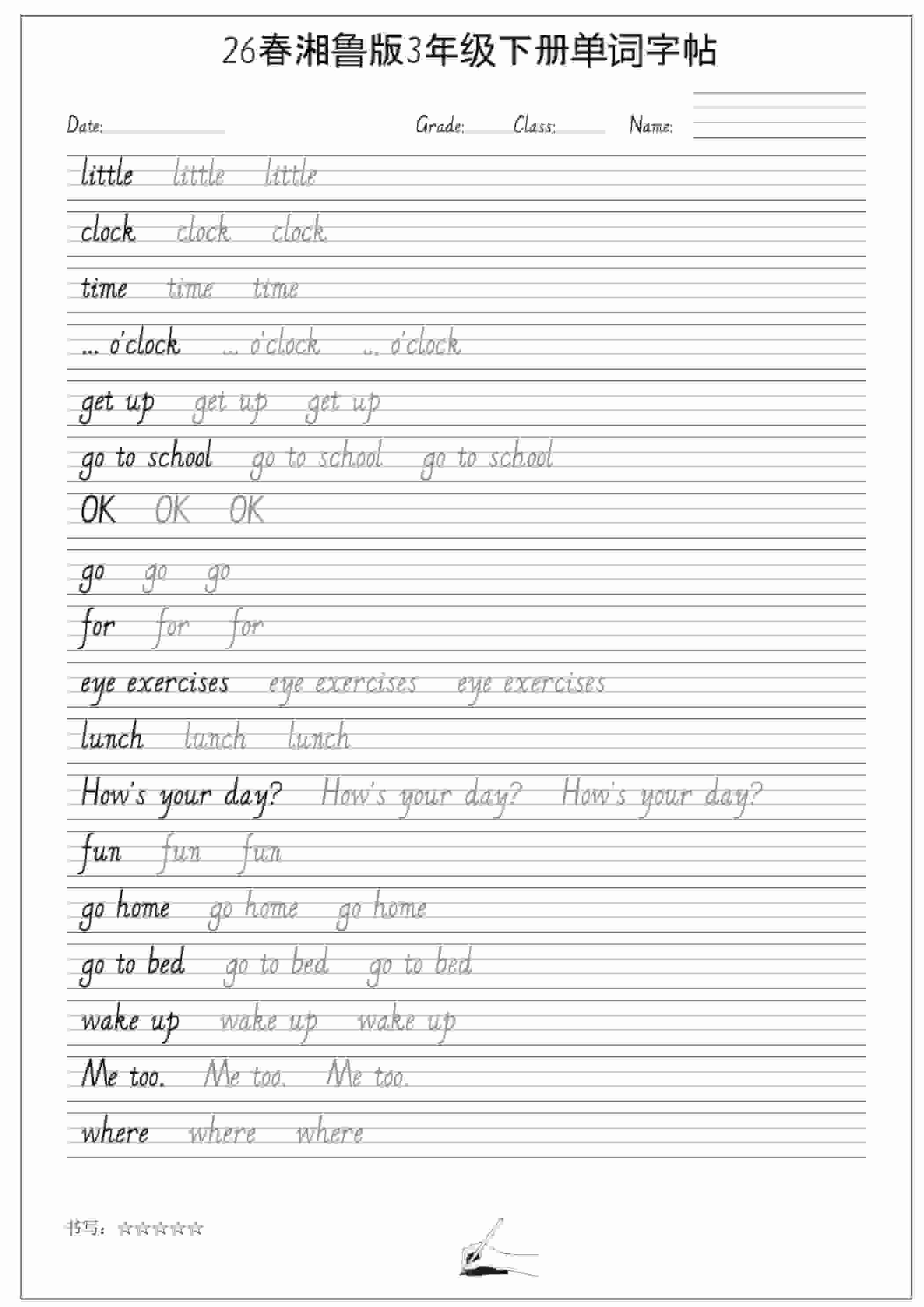三年级下语文26春写字表每日打卡字帖(5字版)11页