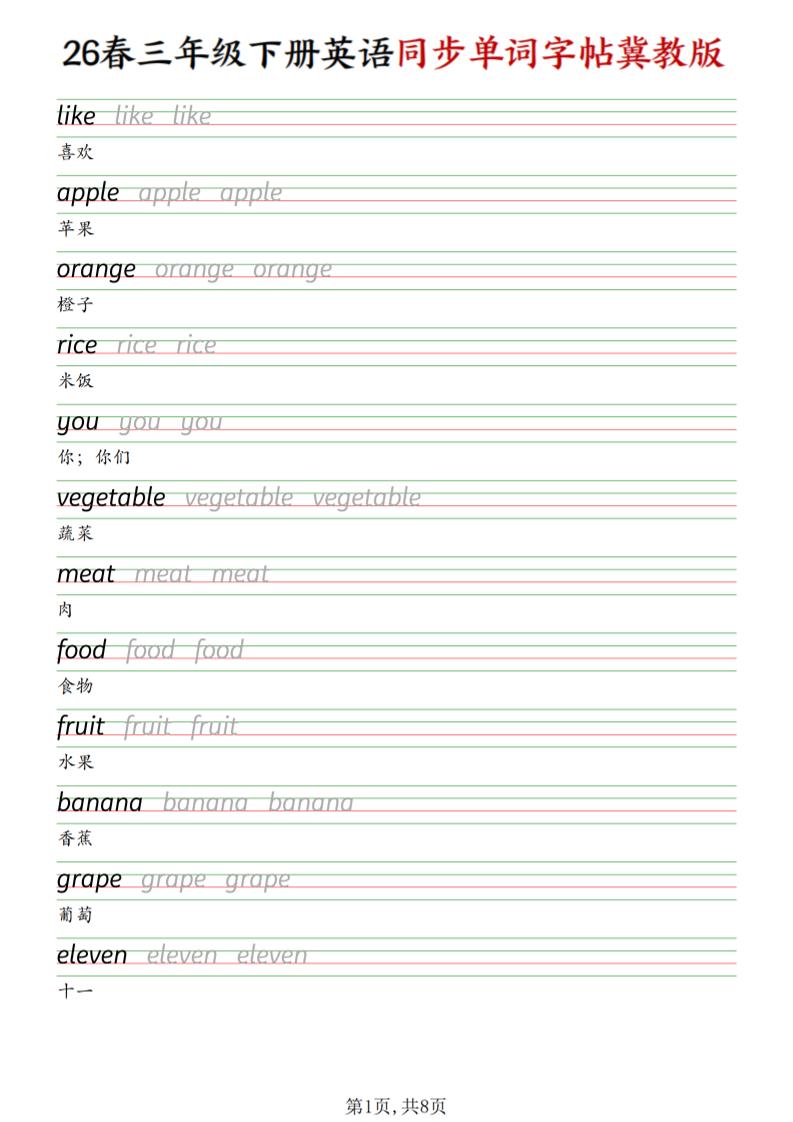 三下冀教版英语同步单词字帖