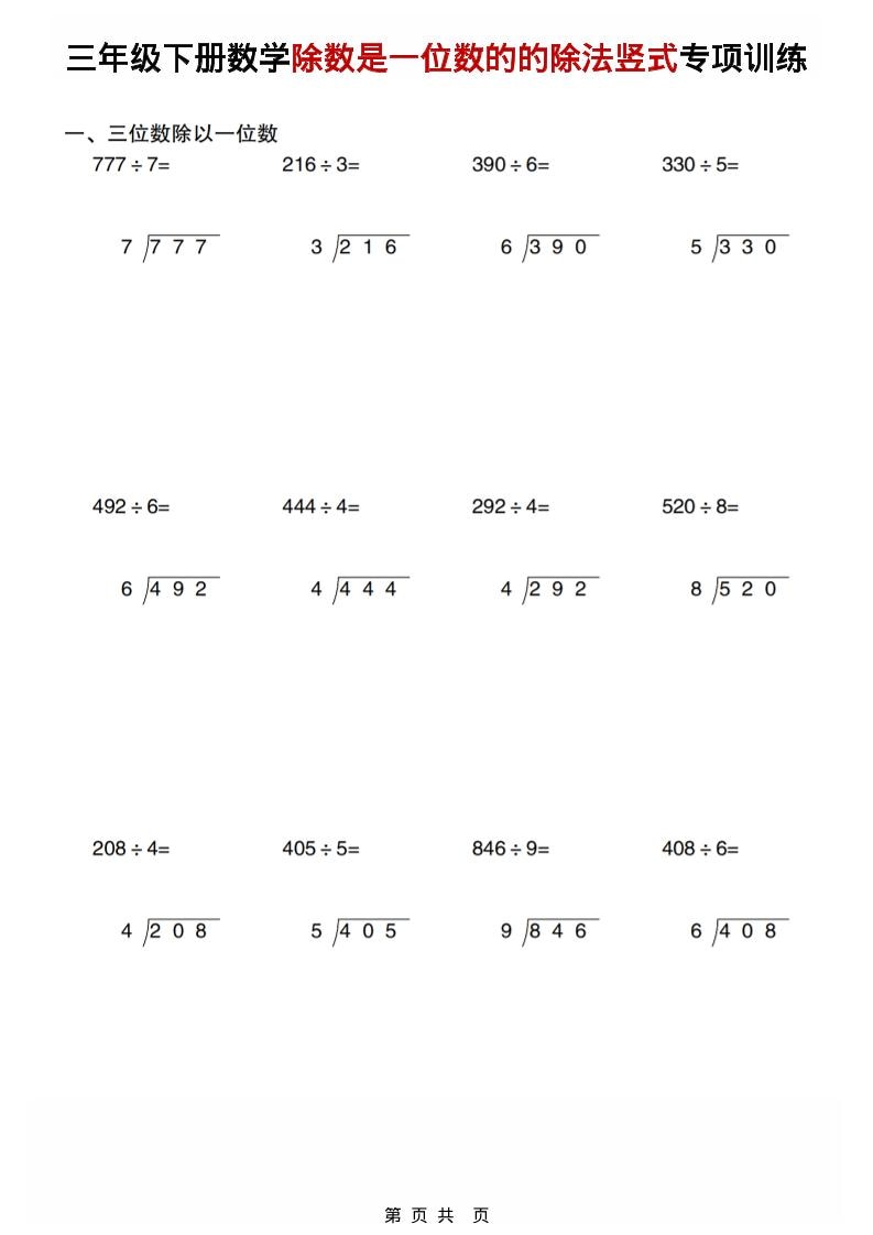 新版三年级下数学同步课本每日一练小纸条(含答案)人教版